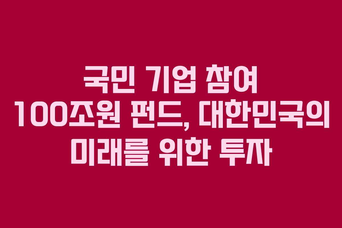 국민 기업 참여 100조원 펀드는 한국 경제의 미래를 위한 중요한 정책 방향성을 제시하고 있으며, 성공적인 운용을 위해서는 투명하고 효율적인 집행, 민간의 자율적인 투자 유도, 그리고 장기적인 관점에서 시장의 원리를 존중하는 접근이 중요할 것입니다.