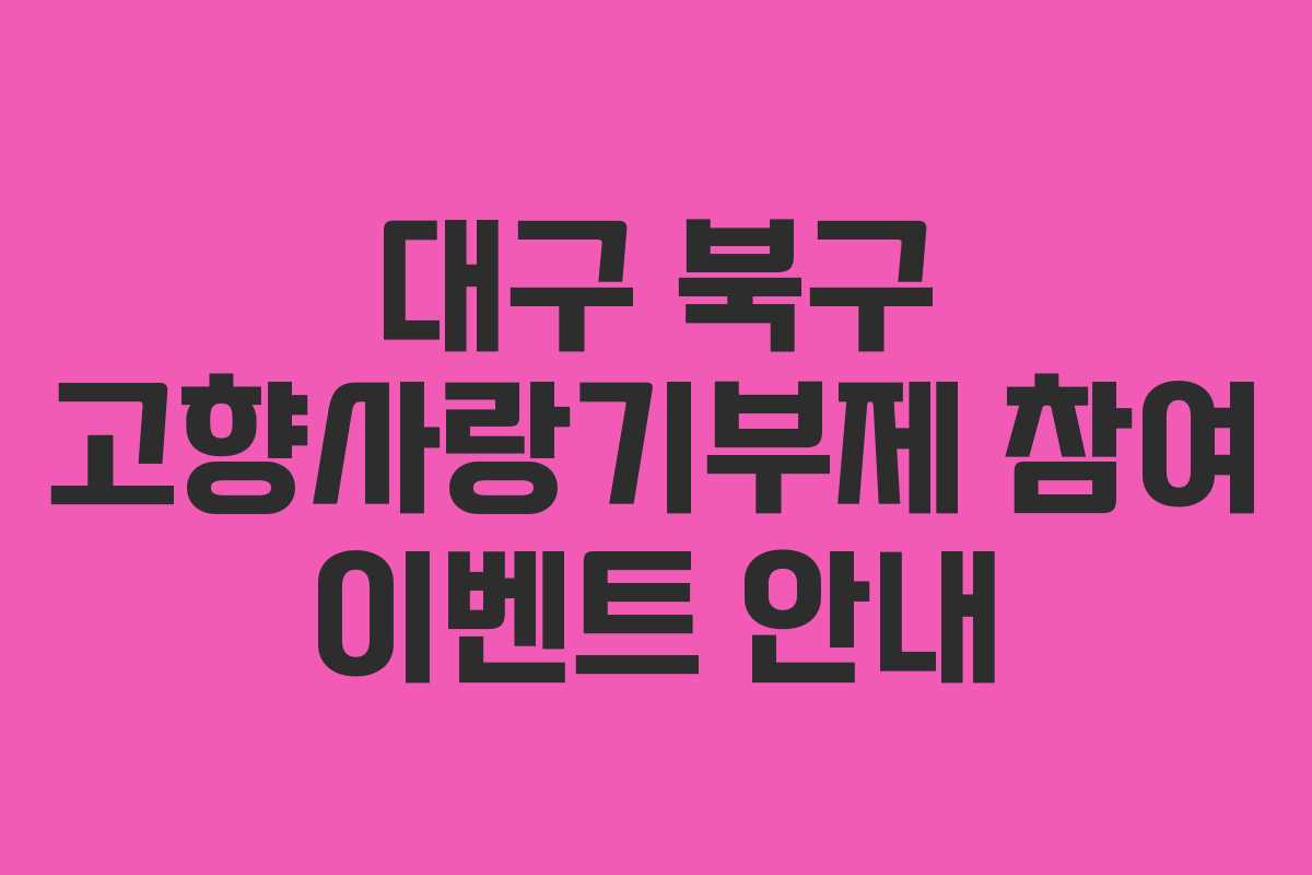 대구 북구청과 민간 플랫폼 ‘위기브’가 협력하여 고향사랑기부제 이벤트를 진행합니다. 이번 이벤트는 해피오더 앱을 통해 10만 원 이상 기부하는 분들에게 다양한 혜택과 선물을 제공합니다. 많은 참여와 관심 부탁드립니다.