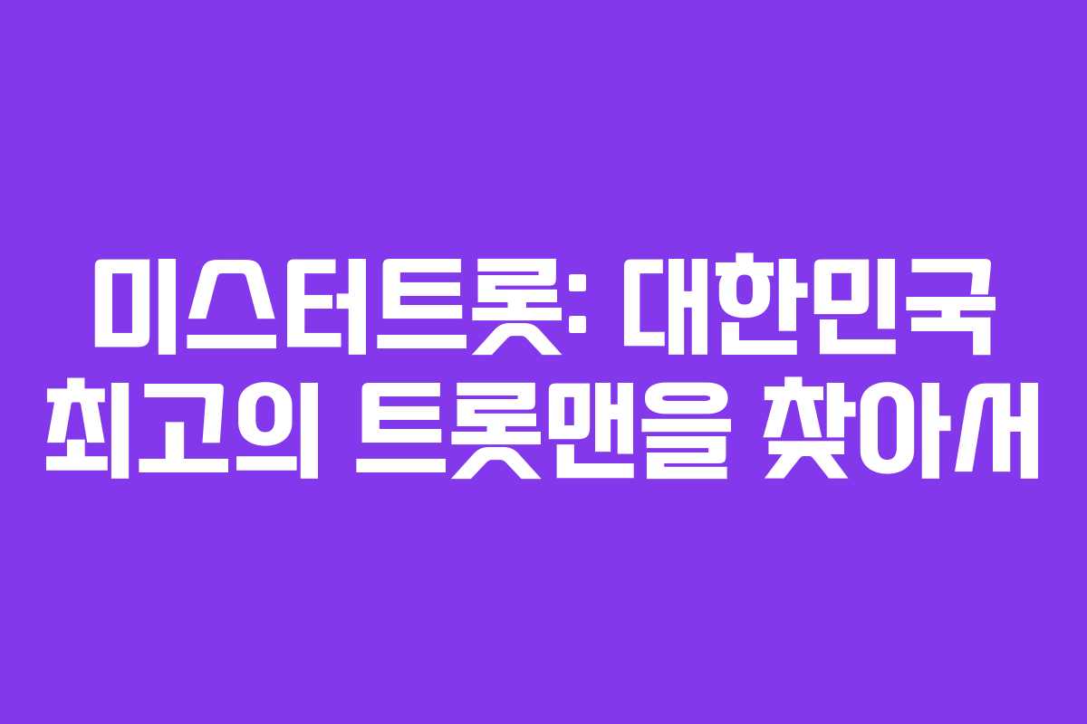 미스터트롯은 매주 목요일 오후 10시에 TV조선에서 방송되는 인기 오디션 프로그램입니다. 이 프로그램은 참가자들이 1대1 대결을 통해 진정한 트롯맨으로 성장하는 과정을 담고 있습니다. 심사위원의 재선택과 함께 치열한 경쟁을 보여주는 미스터트롯은 많은 시청자들의 사랑을 받고 있습니다.