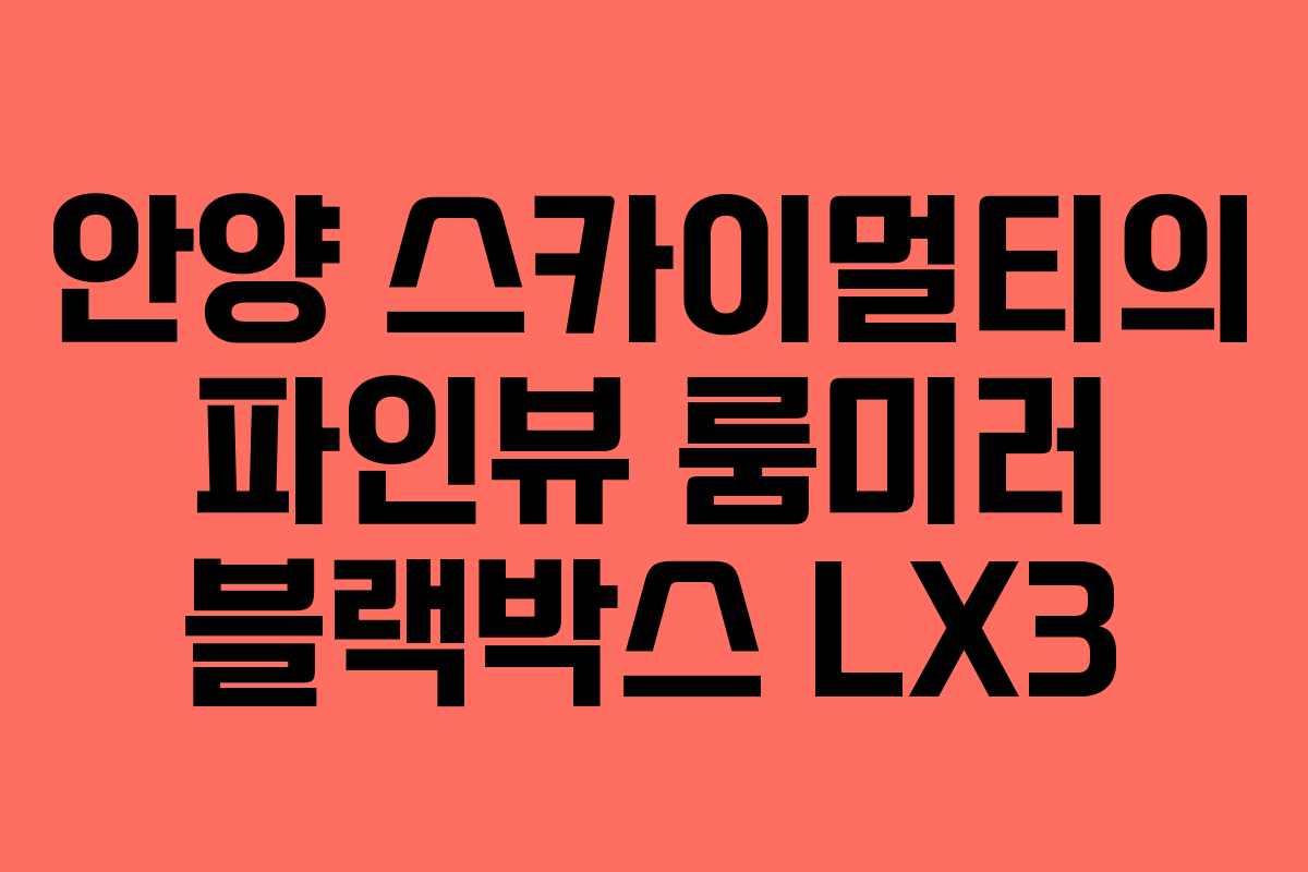 안양 스카이멀티에서 제공하는 파인뷰 룸미러 블랙박스 LX3는 차량 안전을 위한 필수 아이템입니다. 이 제품은 블랙박스 기능 외에도 후방 카메라를 내장하여 안전한 주행을 지원합니다.