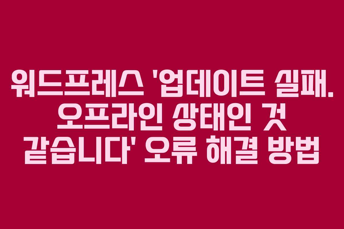 워드프레스를 사용하다 보면 ‘업데이트 실패. 오프라인 상태인 것 같습니다’라는 오류 메시지를 자주 접할 수 있습니다. 이 오류는 주로 설정 문제로 발생하며, 해결 방법을 알아보겠습니다.