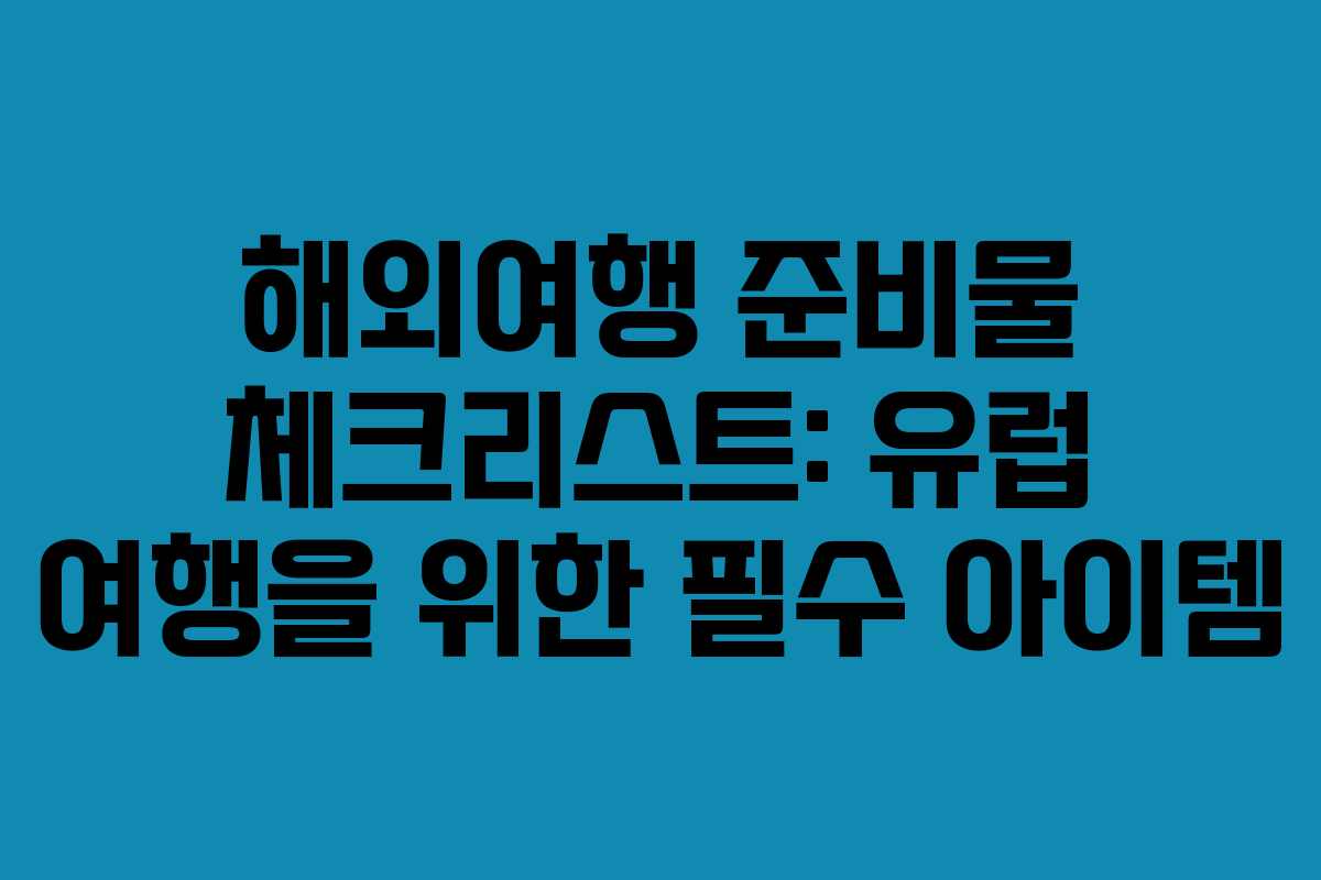 해외여행 준비물 체크리스트: 유럽 여행을 위한 필수 아이템