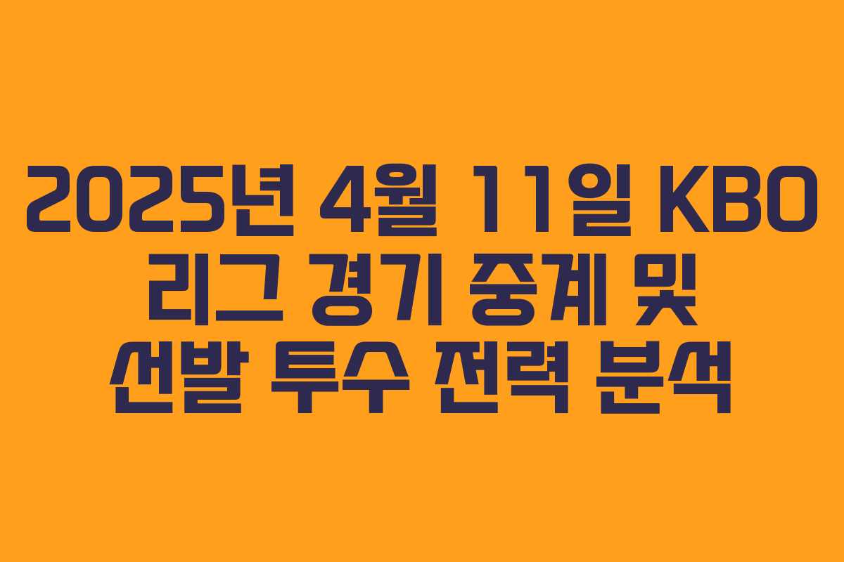 2025년 4월 11일 KBO 리그 경기 중계 및 선발 투수 전력 분석