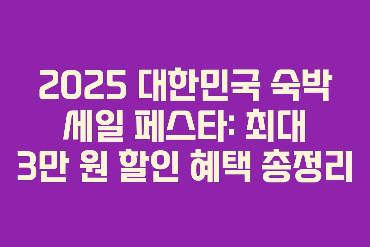 2025년 8월 20일부터 12월 7일까지 진행되는 대한민국 숙박 세일 페스타는 문화체육관광부와 한국관광공사가 주관하는 대규모 할인 행사입니다. 이 행사에서는 숙박 예약 시 최대 3만 원까지 할인받을 수 있는 기회가 제공됩니다.