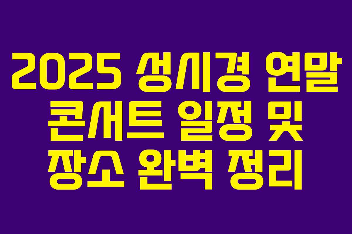 매년 연말, 성시경의 감미로운 목소리로 한 해를 마무리하고 싶어하는 팬들이 많습니다. 2025 성시경 연말 콘서트 일정과 장소가 공식적으로 발표되어, 많은 이들이 기대에 부풀고 있습니다. 이번 공연은 크리스마스 시즌을 맞아 더욱 특별한 의미를 지닙니다.